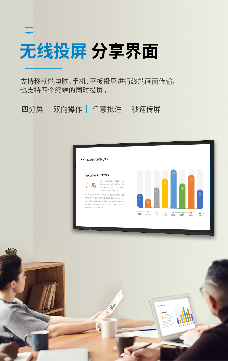 菜單產(chǎn)品中心Product center 液晶廣告機(jī) 壁掛式廣告機(jī) 落地立式廣告機(jī) 電梯超薄廣告機(jī) 車載廣告機(jī) 高亮廣告機(jī) 戶外廣告機(jī) 液晶拼接屏 專業(yè)液晶拼接屏 4K液晶拼接屏 廣告拼接屏 無(wú)縫液晶拼接屏 觸摸液晶拼接屏 LED顯示屏 觸控一體機(jī) 壁掛式觸控一體機(jī) 立式觸控一體機(jī) 斜面觸控一體機(jī) 智能家居觸控一體機(jī) 戶外觸控一體機(jī) 液晶電子白板 教育電子白板 會(huì)議電子白板 工控一體機(jī) 觸摸顯示器 紅外觸摸顯示器 電容觸摸顯示器 電阻觸摸顯示器 聲波觸摸顯示器 納米觸摸顯示器 液晶監(jiān)視器 專業(yè)級(jí)監(jiān)視器 4K監(jiān)視器 嵌入式監(jiān)視器 機(jī)架式監(jiān)視器 開(kāi)放式監(jiān)視器 SDI監(jiān)視器 高亮監(jiān)視器 廣播級(jí)監(jiān)視器 工業(yè)顯示器 4K顯示器 機(jī)架式顯示器 開(kāi)放式顯示器 醫(yī)療顯示器 KVM顯示器 指揮室顯示器 智慧校園產(chǎn)品 專業(yè)定制商顯 多屏廣告機(jī) 多功能觸控一體機(jī) 多功能廣告機(jī) 微信打印廣告機(jī) 魔鏡廣告機(jī) 透明廣告機(jī) 全息廣告機(jī) 條形屏廣告機(jī) 旋轉(zhuǎn)廣告機(jī) 裸眼3D廣告機(jī) 人工智能產(chǎn)品 顯示配套設(shè)備 拼接配套設(shè)備 廣告機(jī)播放盒 OPS播放盒 拼接支架 移動(dòng)支架 相關(guān)軟件 吊頂支架 線材 木架 蜂窩箱 桌面底座 熱門產(chǎn)品 →優(yōu)色3.5mm超窄邊46寸液晶拼接屏→優(yōu)色49寸3.5mm超窄邊液晶拼接屏→優(yōu)色3.5mm超窄邊55寸液晶拼接屏 您的位置:首頁(yè) → 公司產(chǎn)品 → 液晶電子白板 → 會(huì)議電子白板 T系列電子白板類別:會(huì)議電子白板 簡(jiǎn)介: 在線咨詢 返回列表 產(chǎn)品說(shuō)明 相關(guān)產(chǎn)品 43寸液晶電子白板 T系列電子白板 U系列電子白板 E系列電子白板 E系列電子白板