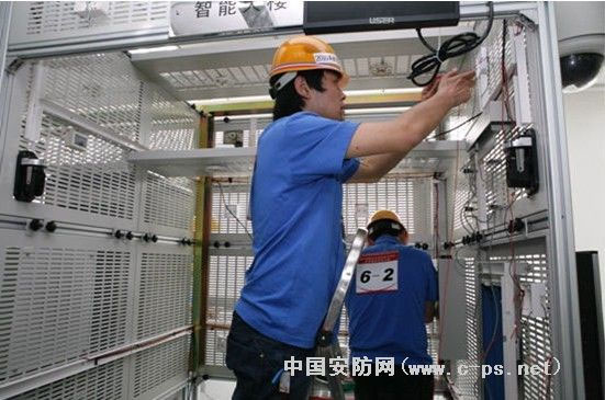 樓宇大賽現(xiàn)場——選手在安裝優(yōu)色液晶監(jiān)視器