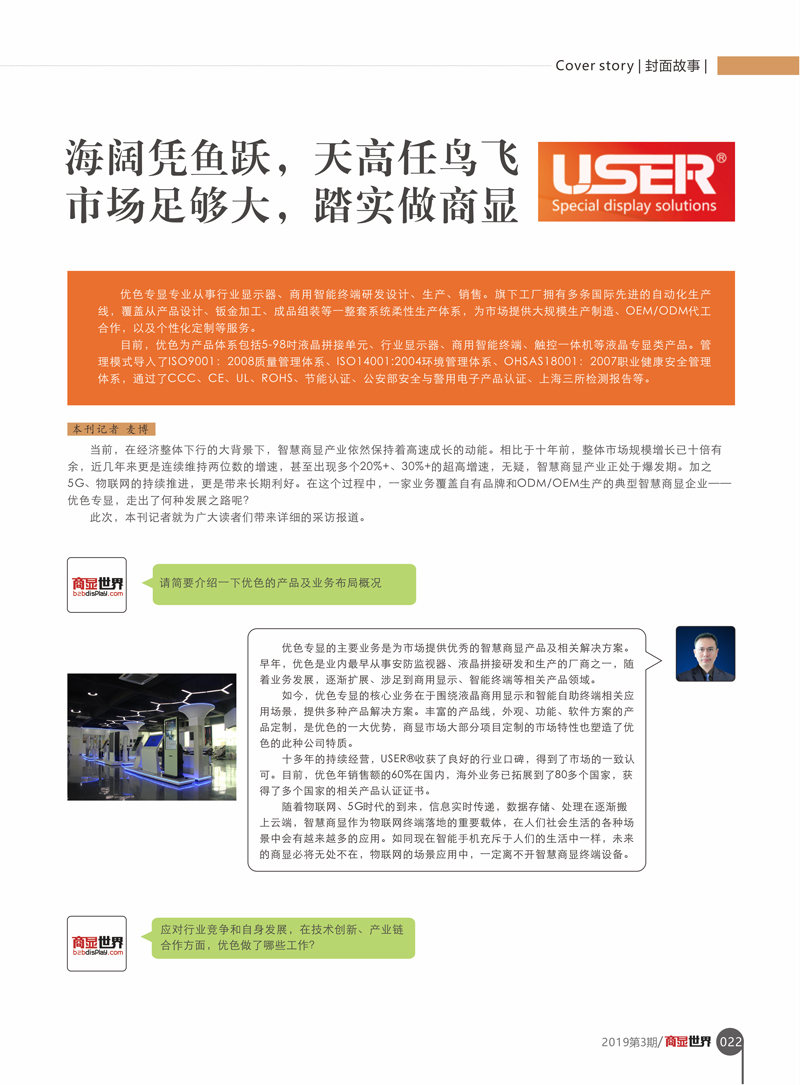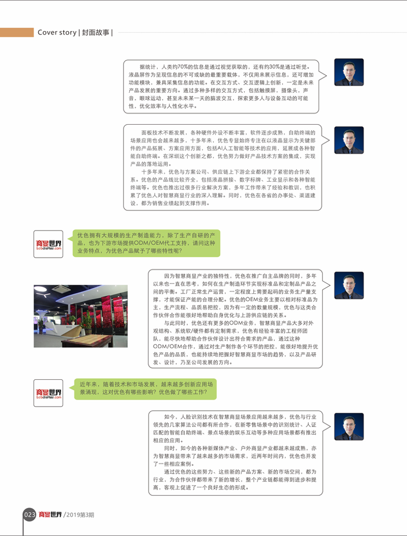 優(yōu)色專顯本次專訪刊登在商顯世界2019年第03期,以下是專訪的詳細(xì)內(nèi)容與大家一起分享: