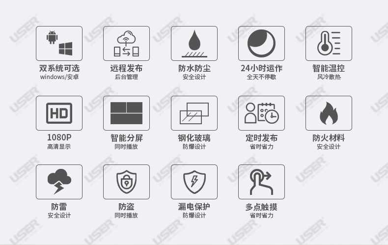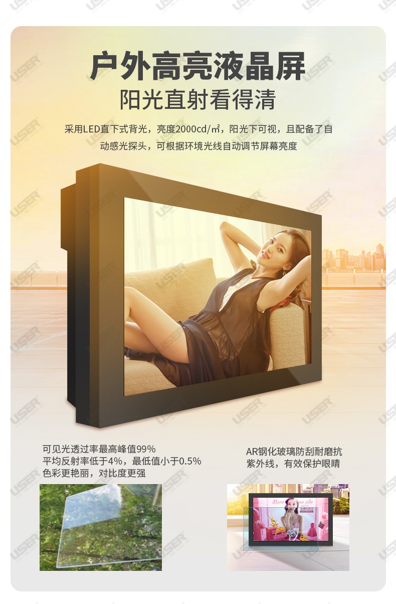 菜單產(chǎn)品中心Product center 液晶廣告機(jī) 壁掛式廣告機(jī) 落地立式廣告機(jī) 電梯超薄廣告機(jī) 車載廣告機(jī) 高亮廣告機(jī) 戶外廣告機(jī) 液晶拼接屏 專業(yè)液晶拼接屏 4K液晶拼接屏 廣告拼接屏 無縫液晶拼接屏 觸摸液晶拼接屏 LED顯示屏 觸控一體機(jī) 壁掛式觸控一體機(jī) 立式觸控一體機(jī) 斜面觸控一體機(jī) 智能家居觸控一體機(jī) 戶外觸控一體機(jī) 液晶電子白板 教育電子白板 會(huì)議電子白板 工控一體機(jī) 觸摸顯示器 紅外觸摸顯示器 電容觸摸顯示器 電阻觸摸顯示器 聲波觸摸顯示器 納米觸摸顯示器 液晶監(jiān)視器 專業(yè)級監(jiān)視器 4K監(jiān)視器 嵌入式監(jiān)視器 機(jī)架式監(jiān)視器 開放式監(jiān)視器 SDI監(jiān)視器 高亮監(jiān)視器 廣播級監(jiān)視器 工業(yè)顯示器 4K顯示器 機(jī)架式顯示器 開放式顯示器 醫(yī)療顯示器 KVM顯示器 指揮室顯示器 智慧校園產(chǎn)品 專業(yè)定制商顯 多屏廣告機(jī) 多功能觸控一體機(jī) 多功能廣告機(jī) 微信打印廣告機(jī) 魔鏡廣告機(jī) 透明廣告機(jī) 全息廣告機(jī) 條形屏廣告機(jī) 旋轉(zhuǎn)廣告機(jī) 裸眼3D廣告機(jī) 人工智能產(chǎn)品 顯示配套設(shè)備 拼接配套設(shè)備 廣告機(jī)播放盒 OPS播放盒 拼接支架 移動(dòng)支架 相關(guān)軟件 吊頂支架 線材 木架 蜂窩箱 桌面底座 熱門產(chǎn)品 →優(yōu)色3.5mm超窄邊46寸液晶拼接屏→優(yōu)色49寸3.5mm超窄邊液晶拼接屏→優(yōu)色3.5mm超窄邊55寸液晶拼接屏 您的位置:首頁 → 公司產(chǎn)品 → 液晶廣告機(jī) → 戶外廣告機(jī) 55寸戶外壁掛廣告機(jī)類別:戶外廣告機(jī) 簡介:液晶尺寸:55英寸 1.整機(jī)采用風(fēng)冷方案,達(dá)到IP65防護(hù)等級,防塵、防水,可完全安裝于室外; 2.高亮度的液晶顯示屏,配合自動(dòng)光感控制系統(tǒng)陽光下可視; 3.具備溫控功能,在寬溫條件下可以正常工... 在線咨詢 返回列表 產(chǎn)品說明 相關(guān)產(chǎn)品 55寸戶外壁掛廣告機(jī) 55寸戶外落地廣告機(jī) 49寸戶外落地廣告機(jī) 43寸戶外落地廣告機(jī) 32寸戶外落地廣告機(jī) 65寸戶外燈桿屏_智慧路燈屏
