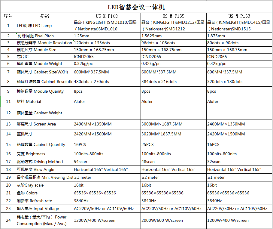 LED智慧會(huì)議一體機(jī)參數(shù):