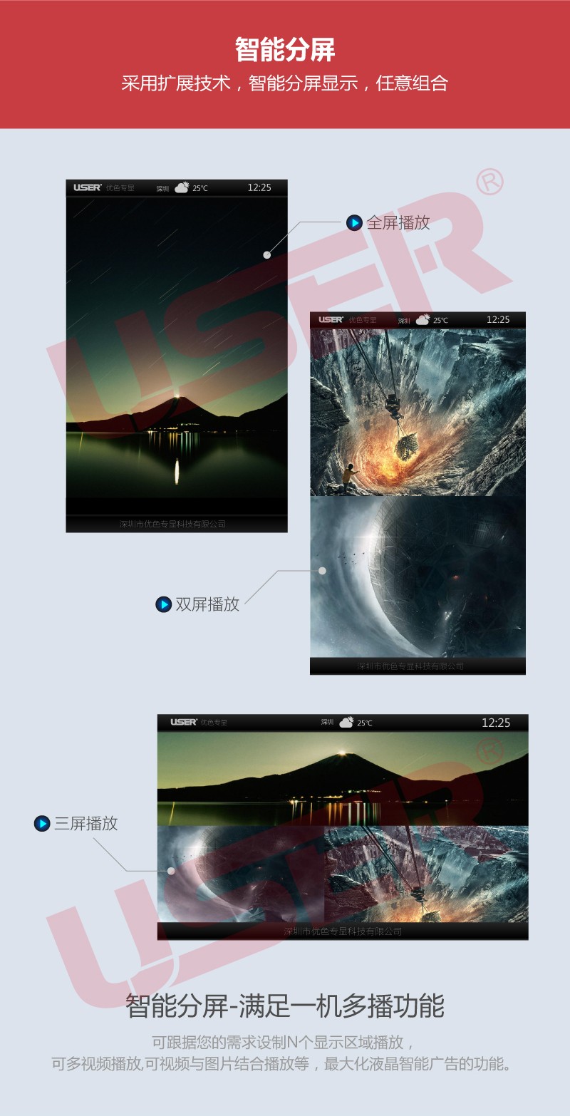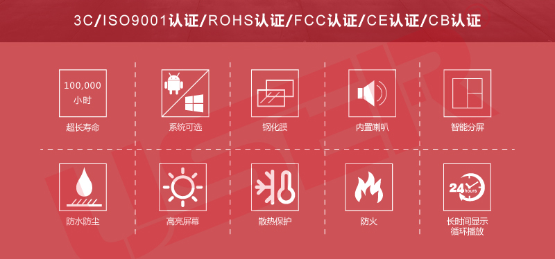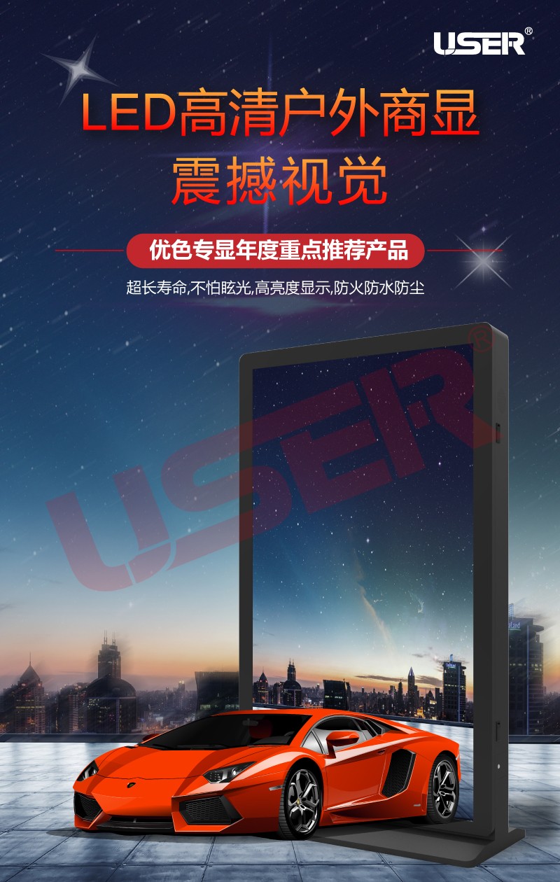 5.全戶外防水設(shè)計(jì),內(nèi)部采用高質(zhì)量的汽車膠條+防水玻璃,戶外防水等級(jí):IP65,防潮,防爆、仿雷、仿漏電。                                    6.智能感光,根據(jù)周圍環(huán)境自動(dòng)調(diào)節(jié)屏幕亮度,使達(dá)最佳可視效果,杜絕光污染;