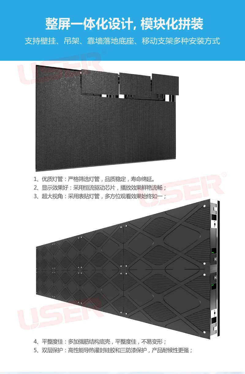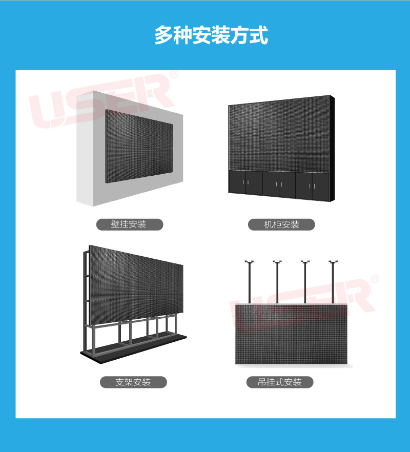 54寸LED拼接屏小間距P1.5全彩LED顯示屏落地吊掛無縫監(jiān)控電視墻類別:LED顯示屏