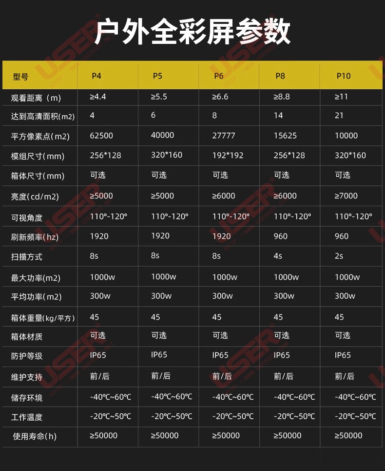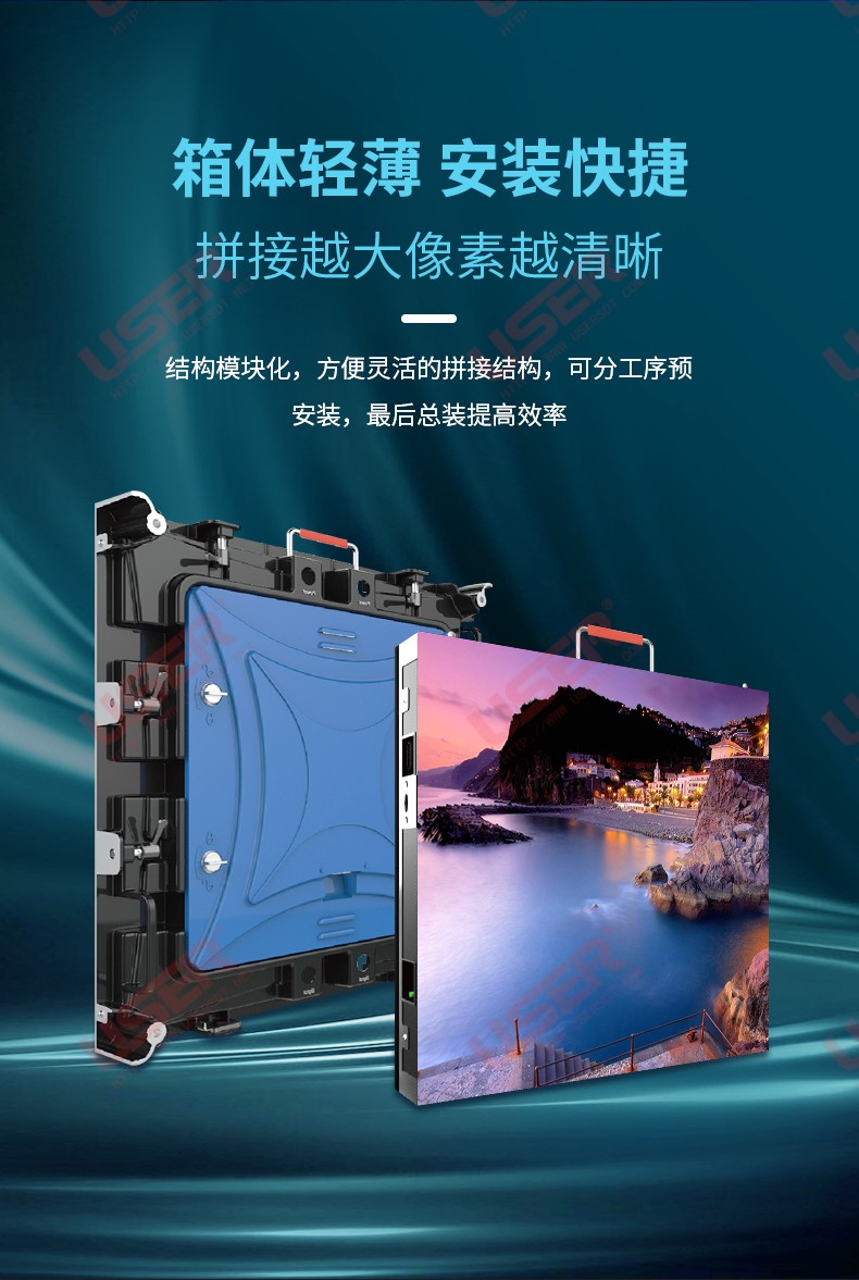 320x160mm 模塊,搭配使用 640x480mm壓鑄鎂鋁合金箱體,像素間距為4mm。
