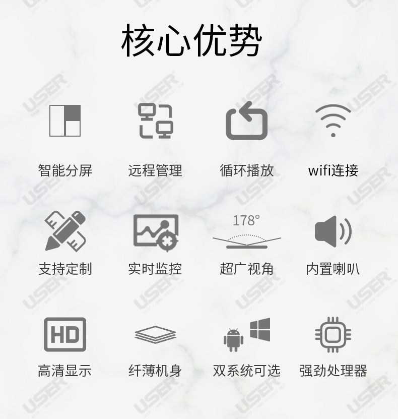 簡(jiǎn)介:采用高清16:9全視角LCD顯示屏,分辨率為1920*1080,Android、Windows、單機(jī)等方案可選,顯示面積 680.4*1209.6mm 顯示比例 16:9 可視角度 89/89/89/89(左/右/上/下) 亮 度 350cd/m2 背光類...