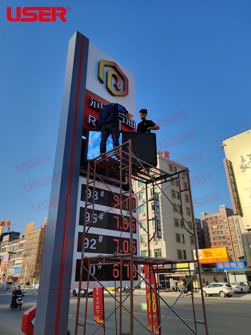 揭陽(yáng)市潤(rùn)泰加油站采用優(yōu)色專顯P2高刷全彩led顯示屏全套整體解決方案