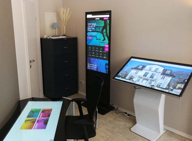 優(yōu)色立式廣告機(jī)和臥式觸摸一體機(jī)用于德國某公司展廳展示