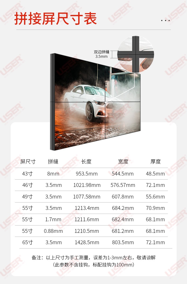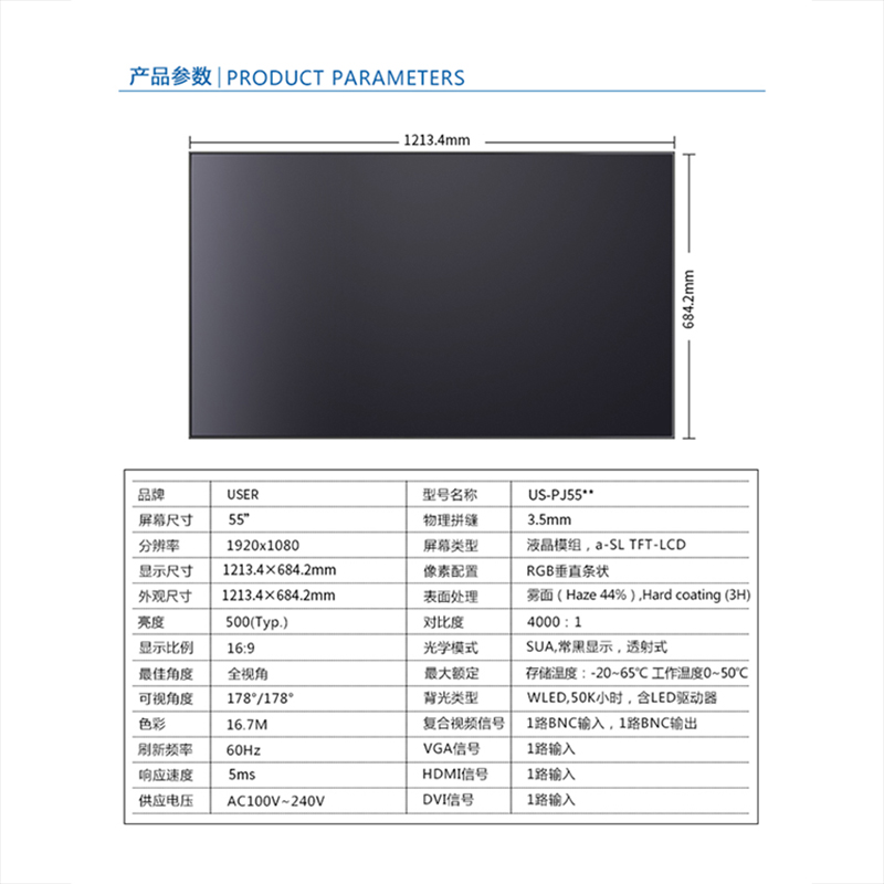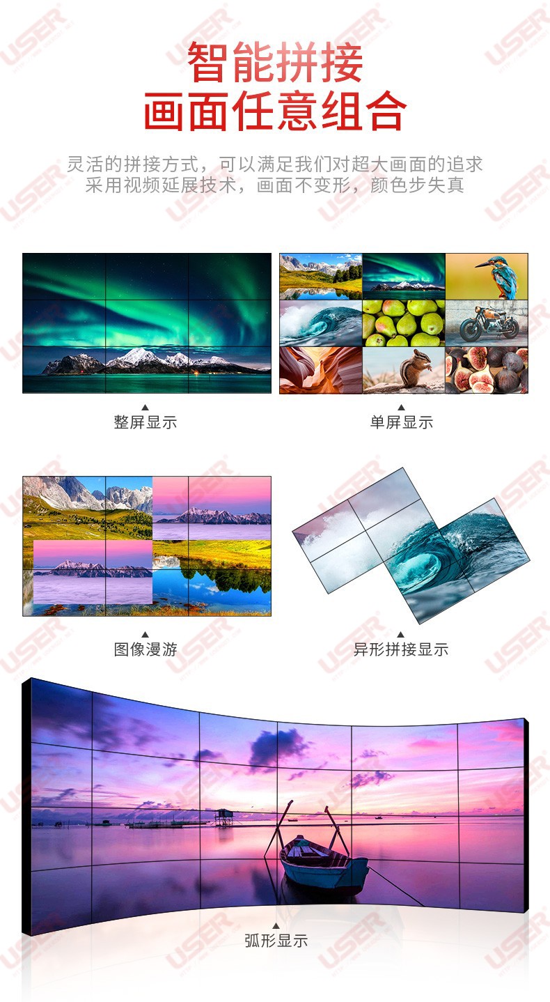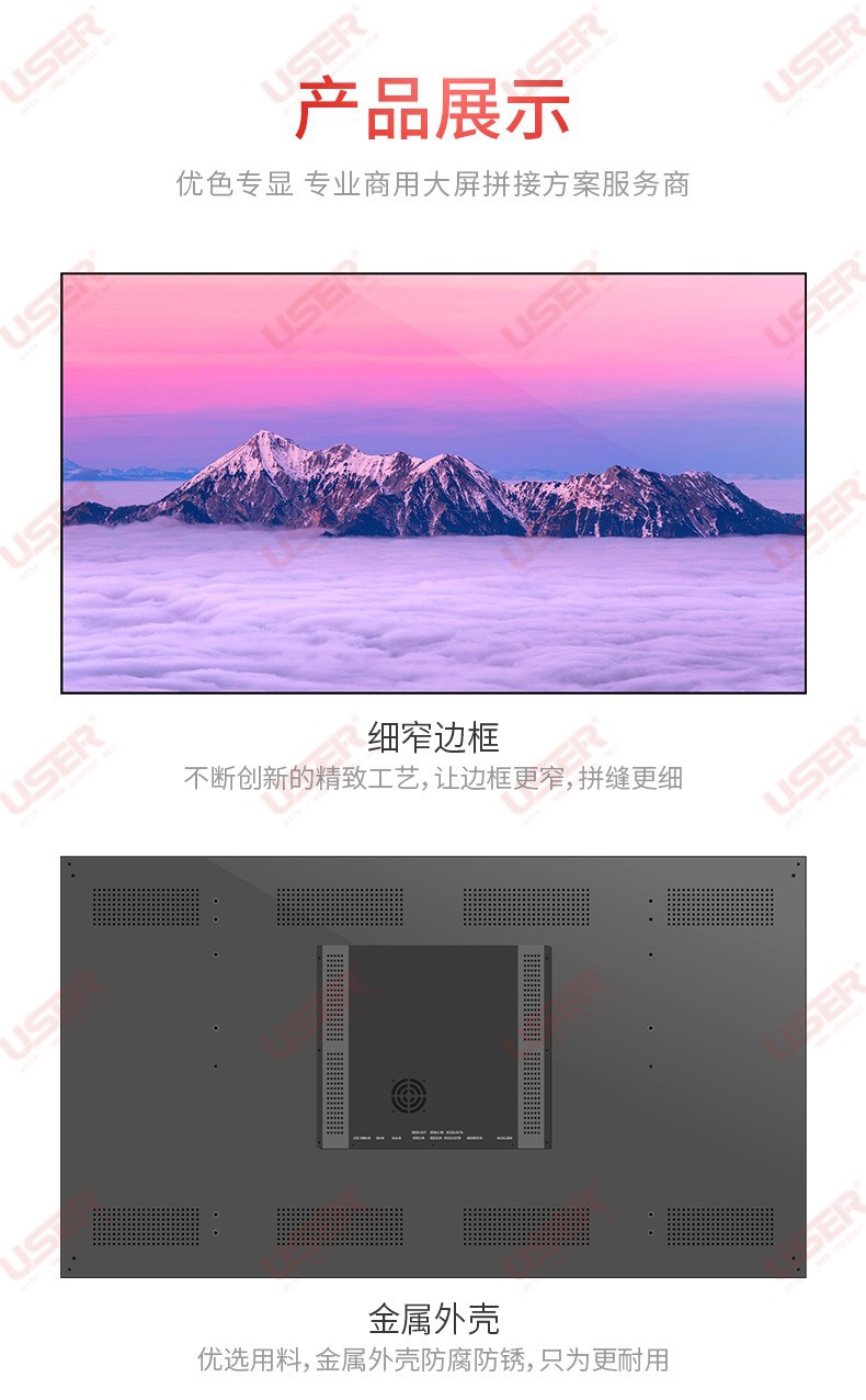 菜單產(chǎn)品中心Product center 液晶廣告機 壁掛式廣告機 落地立式廣告機 電梯超薄廣告機 車載廣告機 高亮廣告機 戶外廣告機 液晶拼接屏 專業(yè)液晶拼接屏 4K液晶拼接屏 廣告拼接屏 無縫液晶拼接屏 觸摸液晶拼接屏 LED顯示屏 觸控一體機 壁掛式觸控一體機 立式觸控一體機 斜面觸控一體機 智能家居觸控一體機 戶外觸控一體機 液晶電子白板 教育電子白板 會議電子白板 工控一體機 觸摸顯示器 紅外觸摸顯示器 電容觸摸顯示器 電阻觸摸顯示器 聲波觸摸顯示器 納米觸摸顯示器 液晶監(jiān)視器 專業(yè)級監(jiān)視器 4K監(jiān)視器 嵌入式監(jiān)視器 機架式監(jiān)視器 開放式監(jiān)視器 SDI監(jiān)視器 高亮監(jiān)視器 廣播級監(jiān)視器 工業(yè)顯示器 4K顯示器 機架式顯示器 開放式顯示器 醫(yī)療顯示器 KVM顯示器 指揮室顯示器 智慧校園產(chǎn)品 專業(yè)定制商顯 多屏廣告機 多功能觸控一體機 多功能廣告機 微信打印廣告機 魔鏡廣告機 透明廣告機 全息廣告機 條形屏廣告機 旋轉(zhuǎn)廣告機 裸眼3D廣告機 人工智能產(chǎn)品 顯示配套設(shè)備 拼接配套設(shè)備 廣告機播放盒 OPS播放盒 拼接支架 移動支架 相關(guān)軟件 吊頂支架 線材 木架 蜂窩箱 桌面底座 熱門產(chǎn)品 →優(yōu)色3.5mm超窄邊46寸液晶拼接屏→優(yōu)色49寸3.5mm超窄邊液晶拼接屏→優(yōu)色3.5mm超窄邊55寸液晶拼接屏 您的位置:首頁 → 公司產(chǎn)品 → 液晶拼接屏 → 專業(yè)液晶拼接屏 優(yōu)色3.5mm超窄邊55寸液晶拼接屏類別:專業(yè)液晶拼接屏 簡介:◆ 型號:MG-PJ5501 ◆類型:三星/LG/京東方BOE面板 ◆亮度:500-700cd/m2(可選) ◆超窄邊設(shè)計,拼縫3.5mm ◆ 在ISO9001嚴格的質(zhì)量控制體系下生產(chǎn)? ◆ 色彩均勻,圖像穩(wěn)定,為拼接大畫面定制... 在線咨詢 返回列表 產(chǎn)品說明 相關(guān)產(chǎn)品 優(yōu)色1.7mm超窄邊55寸液晶拼接屏 優(yōu)色49寸1.8mm超窄邊液晶拼接墻 優(yōu)色49寸3.5mm超窄邊液晶拼接屏 優(yōu)色3.5mm超窄邊55寸液晶拼接屏 優(yōu)色3.5mm超窄邊46寸液晶拼接屏 優(yōu)色5.3mm超窄邊55寸液晶拼接屏